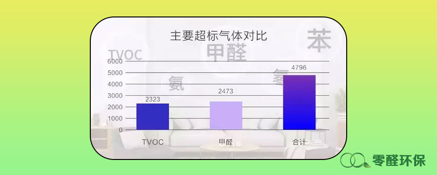 室内空气污染的主要有害气体是甲醛和TVOC(总挥发性有机物),在6482个检测样本中,这2种气体超标点位共计4796个,占总不合格点位的97.3%。